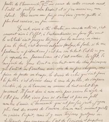 1916. Green annonce à son ami l’envoi de vers et de prose : « … Tu trouveras sans doute qu’ il y a beaucoup de présomption à faire un sonnet à seize ans. Mais tant pis. Quant au morceau intitulé ‘La Morte’ (c’est gai), c’est peut-être ce que j’ai fait de plus personnel, de plus intime, depuis que nous nous connaissons… Sois donc indulgent… » – Peu après, il part rejoindre sa sœur Eleanor à Gênes, ville dont il donne une très jolie description et où il profite de la mer : « … c’est souvent assez dur de travailler ici ; on se sent si paresseux lorsqu’ il fait chaud et l’on a plus du tout envie de débrouiller une version ou de tourner un thème… » – 29 août : critique des vers envoyés par Gilbert et jugements littéraires : « … Je ne comprends pas ton admiration pour Baudelaire. Ses idées de fossoyeur m’ennuient à périr. Sans doute, il y a dans Les Fleurs du Mal des poésies délicieuses, mais ce sont justement, à mon avis, celles que son effroi de la mort n’a pas inspiré… » ; il a lu Le Rêve de Zola : « … Ce mélange de réalisme et de merveilleux ne m’a pas beaucoup plu… ». Il dessine aussi, fait des paysages au pastel : « … J’en suis venu à deux conclusions. 1° que je tiens mieux le crayon que la plume. 2° que la nature m’ intéresse beaucoup plus que ces affreux plâtres du Lycée et que je donnerais tous les Nérons et les Ecorchés du monde pour un cyprès d’Italie… » – Il vient de lire La Puissance des ténèbres de Tolstoï, « pièce effrayante que je te conseille de lire » – « … Je me suis acheté quelques volumes de Hugo ces jours-ci. Il m’ éblouit. J’ai beau m’en défendre et me répéter que son théâtre ne tient pas debout, que ses romans sont faux, je ne me lasse pas de le lire et le relire… ».