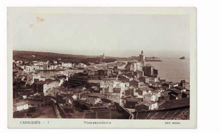 Au dos d’une jolie vue du « Port-Lligat » de Cadaqués. « Bocoue de souvenirs après les tableaux, nous fessons des chevots esculptés en platre dans l’olivier. On se souvien de vous… ». Gala ajoute quelques lignes : « … Nous sommes si bien enfin très au calme, au soleil et responsables que de nous-mêmes. Très affectueusement. Votre Gala »