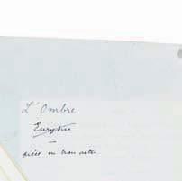 Premier jet très corrigé de cette pièce de théâtre écrite entre le « 3 juin 1955 » et le « 2 avril 1956 ». Green en a rayé le titre d’origine, « Eurydice », pour le remplacer par « L’Ombre » ; les dernières vingt pages correspondent à des scènes à modifier ou à ajouter au texte principal.