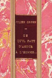 Manuscrit autographe de près de 100 pages in-4. Rédigé dans un carnet de toile rouge, conservé dans une chemise rigide habillée de papier marbré. Pièce de titre en cuir rouge : « Julien Green – Ce qu’ il faut d’amour à l’ homme… ». Etui assorti. Pièces jointes.
