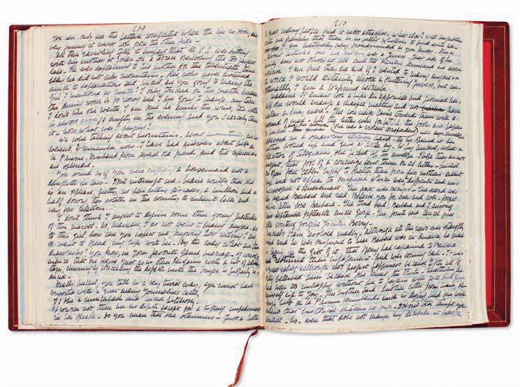 Manuscrit autographe signé, en anglais, intitulé sur la première page « T HE S ELBYS – A novel by Anne Green », dédicacé et daté à la fin « For my dear Julian - August 21 rst 1929 », environ 235 pages montées sur onglets. Belle reliure en maroquin rouge signée G. Desnaux avec le nom de « Julien Green » imprimé en or sur le premier plat. Dos à cinq nerfs avec titre, nom de l’auteur et date « 1929 » en or. Plats intérieurs doublés de papier rouge encadré d’un double filet doré. Etui assorti.