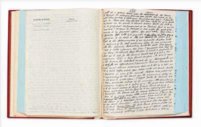Manuscrit autographe en anglais de son roman « A M ARRIAGE OF CONVENIENCE », environ 190 pages in-4 montées sur onglets, conservé dans une belle reliure plein maroquin rouge signée G. Desnaux , avec le nom de « Julien Green » imprimé en or sur le premier plat. Dos à cinq nerfs avec titre, nom de l’auteur et date « 1932 » en or. Plats intérieurs doublés de papier rouge encadré d’un double filet doré. Etui assorti.