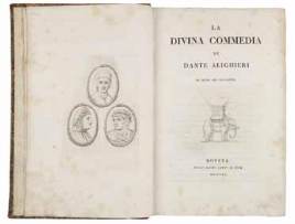 Giuseppe Bossi con medaglioni che contengono i ritratti di Dante, Petrarca e Boccaccio. Tracce di foxing sparso,