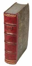 mezzo marocchino rosso e piatti marmorizzati, estremi del titolo e decorazioni in oro al dorso a 5 nervi, tagli