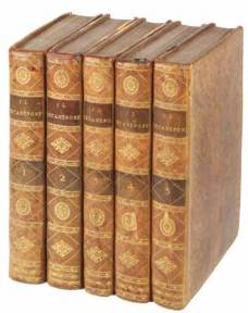 coeva in piena pelle marmorizzata con cornici impresse in oro ai piatti, titoli dorati su tasselli al dorso, dentelles