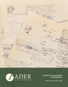 ADER Nordmann. Paris. LETTRES et MANUSCRITS AUTOGRAPHES – MERCREDI 5 NOVEMBRE 2025 à 14H00. Vente Salle des ventes Favart, 3, rue Favart 75002 Paris. Vous pouvez enchérir via la plate-forme DROUOT LIVE (+1,8 % HT) Avec INSCRIPTION avant MERCREDI 5 à 12h00. Ordres d’achat Ekaterina GORSHKOVA – E-Mail : egorshkova@ader-paris.fr - Tél. : 01 87 44 47 74