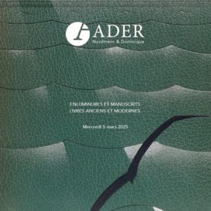 ADER Nordmann. Paris. Enluminures, livres anciens et modernes – MERCREDI 26 NOVEMBRE 2025 à 14H00. Vente Salle des ventes Favart, 3, rue Favart 75002 Paris. Vous pouvez enchérir via la plate-forme DROUOT LIVE (+1,8 % HT) Avec INSCRIPTION avant MERCREDI 26 à 12h00. Ordres d’achat Élodie DELABALLE – E-Mail : elodie.delaballe@ader-paris.fr - Tél. : 01 78 91 10 16