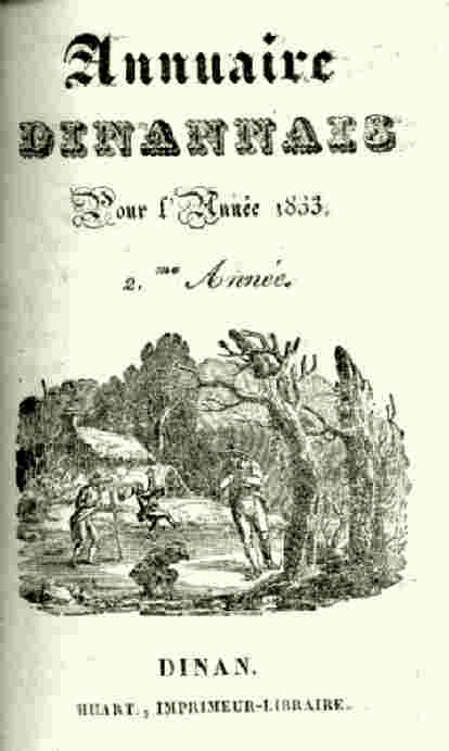 A Dinan, Imprimerie de J. B. HUARD, Place de Champ, n°1, 1858, IN.8°, 212pp + 3 pp.n.ch |