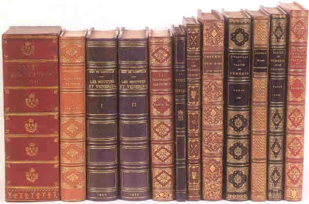 ![]() 161 TWICI (Guillaume). Le Art de venerie. En France [Paris, Pairault], 1883. In-8°, bradel, demi-basane verte, couverture conservée (reliure de lépoque). 100/120 Résultat : 1 900 Tiré à 35 exemplaires, celui-ci (n° 12), UN DES HUIT SUR JAPON. De la bibliothèque Marcel Jeanson (1536), avec ex-libris. LIVRE RARE, mais mal imprimé. Dos passé. Thiébaud, 912. 162 UZÈS (Duchesse d). Histoires de chasse. Paris, Édition dArt de la Phosphatine Falières, 1907. In-folio, bradel, demi-vélin ivoire à coins, couverture illustrée conservée. 120/150 Résultat : 160 Un portrait et six autres aquarelles chromolithographiées par Maurice LELOIR, dont deux sur doubles pages; figures et décors dencadrement gravés par DEVAMBEZ. Exemplaire du Colonel Féline, avec ex-dono. Titre accidenté et restauré. Thiébaud, 914. 163 VALENTIN des ORMEAUX (Charles). La Vénerie en Anjou de Dagobert à nos jours. Angers, Éditions de lOuest, 1952. In-4°, demi-chagrin bordeaux à coins, dos à nerfs orné de caissons, tête dorée, couverture illustrée conservée (reliure de lépoque). 80/100 Résultat : 320 Deux cartes, quatre planches en couleurs et 70 figures dans le texte par Yves BENOIST-GIRONIÈRE. Tiré à 1 000 exemplaires, celui-ci (H.C. 5), un des quelques exemplaires HORS COMMERCE non justifiés. Louvrage est dédié à Jane de La Rüe du Can et Marie de La Garoullaye. Thiébaud-Mouchon, 1263. 164 VALETTE (René). La Chasse à courre et à tir. Paris, H. Laurens, s.d. [1895]. In-4°, bradel, demi-toile verte à bande. 50/70 Résultat : 300 Figures dans le texte et 32 planches par René VALETTE. Couverture illustrée en couleurs. De la bibliothèque Henri Parent, avec ex-libris. Thiébaud, 915. 165 VANIÈRE (Jacques). conomie rurale, Traduction du poeme du P. Vaniere, intitulé Prædium rusticum, par M.Berland. Paris, Frères Estienne, 1756. 2volumes in-12, triple filet doré encadrant les plats, pièces darmes aux angles, armoiries au centre, dos à nerfs orné de pièces darmes, tranches dorées (reliure de lépoque). 1 500/2 000 Résultat : 36.000 ( 236.144,FRF ) Louvrage est dédié à Michel Ferdinand dAlbert dAilly (1714-1769), 6e duc de Chaulnes et pair de France, membre de lAcadémie des Sciences en 1743. TRÈS BEL EXEMPLAIRE DE DÉDICACE EN MAROQUIN AUX ARMES DU DUC DE CHAULNES. Des bibliothèques Chaulnes, avec ses armes et son ex-libris (152bis), Bartel (323), Henri Gallice, avec ex-libris & Marcel Jeanson (1181), avec ex-libris. Thiébaud, 919. 166 [VÉNERIE]. Encyclopédie de la vénerie française. Avant-propos par François Merveilleux du Vignaux. Présentation par Brigitte Chabrol. Paris, Olivier Perrin, 1961. In-4° en feuilles, sous couverture, chemise et étui de léditeur. 120/150 Résultat : 300 Ouvrage publié avec la collaboration du duc de BRISSAC, de Brigitte CHABROL, Paul DAUBIGNÉ, François DRION, Henri de FALANDRE, Honoré GUYOT, Charles Jean HALLO, Guy de LANDEVOISIN, Olivier PERRIN, Jean RATISBONNE, Karl REILLE, du marquis de ROÜALLE, LA VERDURE, du marquis de VIBRAYE & de François VIDRON. Illustrations par Karl REILLE et Charles Jean HALLO, qui a également réalisé les ornements, et nombreuses reproductions photographiques. Un des 220 exemplaires de tÊte sur vélin teinté de Madagascar, celui-ci (n°126), un des 150 comprenant une suite supplÉmentaire des illustrations. Kaps, 155. 167 [VÉNERIE / VIBRAYE (E. de)]. La Vénerie française. Les Allures. Marseille, Le Chêne, s.d. [circa1936]. In-4°, demi-écorce blonde, trompe de chasse dorée en haut du premier plat, couverture illustrée conservée. 80/100 Résultat : 400 Dessins dans le texte et illustrations photographiques hors-texte. Publication de conférences données en 1935 par Edmond de VIBRAYE. Numéro 15 de la quatrième année de la revue trimestrielle «Le Chêne», sous-titrée «Forêts. Chasse. Pêche. Tourisme». De la bibliothèque Henri Parent, avec ex-libris. - Vénerie du Roi Recueils des chasses royales données aux environs de Versailles, en forêts de Marly, Bondy, Saint-Germain, Rambouillet, Fontainebleau, Sénart, Compiègne & Laigue, dans le parc de Meudon, en bois de Boulogne, Trappes, Verrières & du Butard au cours des années 1814 à 1830. Au cours des années couvertes par ces documents qui décrivent 677 chasses, ceux-ci nous permettent de constater que les membres de la famille royale les plus assidus sont dabord le duc de Berry (assassiné le 14 février 1820), puis son frère aîné, le duc dAngoulême (dauphin en 1824); que la duchesse dAngoulême (Madame Royale) vient ensuite avec 26 participations, puis la duchesse de Berry (Marie Caroline, princesse des Deux-Siciles), avec douze présences. Alors que le roi Louis XVIII (mort le 16 septembre 1824) ne vint chasser quune seule fois entre 1814 et 1824 (le 28 juillet 1818, mais les années 1822 et 1824 ne pouvant être prises en compte, faute de document), son frère, Monsieur, sy rendit à vingt-sept reprises pendant la même période, puis, devenu le roi Charles X, y alla vingt-quatre fois au cours des années 1829 et 1830 (20 février 26 juillet). On note également la présence du roi et de la reine de Naples et du prince de Salerne (le 28 mai 1830), du duc de Bordeaux (futur comte de Chambord) et de sa sur, Mademoiselle (future duchesse de Parme) [le 3 octobre 1829]. - Faculté de réunion pour les trois lots suivants : Les trois lots ont été vendus avec la facultès de réunion soit : 13 volumes en maroquin rouge aux armes de manuscrits dècrivant les chasses royales au cours des années 1814 à 1830 = 410.000 euros ( 2.689.942,FRF ) 168 (Lot 1)Vénerie du Roi. Années 1814/1815, 1823 et 1826. Ensemble 3volumes manuscrits, in-12 (115x172mm), maroquin rouge à grain long, filet et fine roulette dentelée dorés encadrant les plats, armoiries et titre au centre du premier plat, dos à nerfs orné de lys, tranches dorées (reliure de lépoque). 8 000/10 000 RÉUNION DE TROIS VOLUMES DES MANUSCRITS DE LA VÉNE
