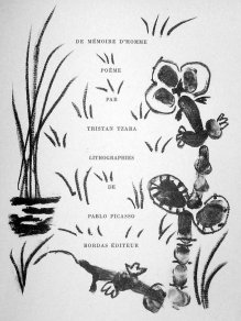 64. TZARA (Tristan). De Mémoire d'Homme. Poème. Lithographies de Pablo PICASSO. Paris, Bordas, 1950, in-4°, broché, couverture à recouvrement ![]() 1500 € Edition originale ornée de 9 lithographies originales de Pablo Picasso. Tiré à 350 exemplaires, celui-ci sur Arches Voir la reproduction page précédente
