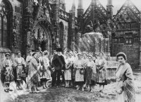Le Folgoët. 204 / 405 - Les chanteuses en rang, assises sur le talus qui borde l'église. "Gwella kanerezed iliz a ve kavet er-vro a-bez!" - Les meilleures chanteuses d'église du pays tout entier ! 150/200 e Résultat : 120 |