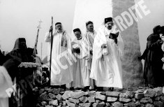 222 / 1651 à 1683 - Trente trois photographies du Gorsedd, dont seize au format (13 x 18 cm.), les suivantes au format (9 x 14 cm.). Elles représentent le cortège avec les femmes en tenues, la bannière, les druides en blanc et des vues des spectateurs, la cavalcade, etc. 300/400 e Résultat : 120 |