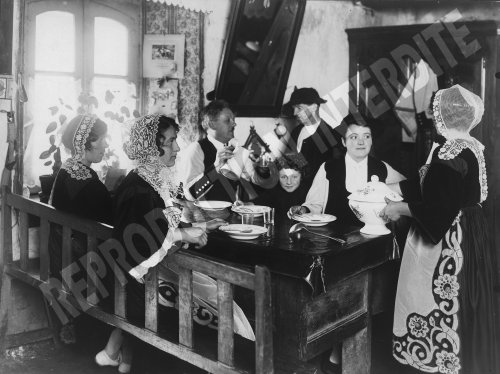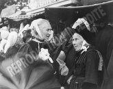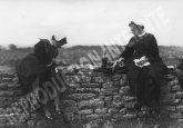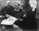 53 / 527 - Femmes bavardant sur le pas de la porte, un coup de vent malmène le capot d'une arrivante. Photographie n° 22 de "Autour des Pardons" avec cette légende : "Chetu aze ur pikol taur avel ! Mallichtou!" - En voilà un maître coup de vent ! malédiction divine ! 150/200 e Résultat : 120 |