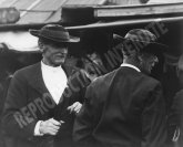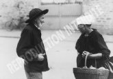 14 / 33 - Les mains dans les poches de sa veste et coiffé d'un feutre à larges bords, il "papote" avec elle, ses paniers sous le bras chargés de provisions. 120/150 e Résultat : 80 |