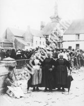 11 / 25 - Sur la place animée,trois "matronnes" posent devant le calvaire, une mendiante à leurs pieds. Résultat : 80 |