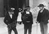 19 / 906 - Trois hommes discutent dans la rue; une boucherie en arrière-plan. 80/100 e Résultat : 80 |