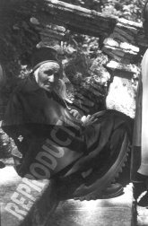 42 / 1228 - Beau portrait d'une pauvre femme au visage buriné, assise dans l'herbe et adossée au mur d'une église, disant son chapelet. 200/300 e Résultat : 120 |