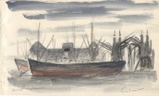 160 - BALZAC (Honoré de) - Les Contes Drolatiques, colligez es Abbayes de Touraine et mis en ordre par le sieur de Balzac pour l'esbattement des pantagruelistes et non aultres. Sixième édition illustrée de 425 dessins par Gustave Doré. P., Garnier fr. s.d., in-8° de xxxii-615 pp.. Rel. plein veau blond, dos à nerfs et caissons richement ornés, roulettes or sur coupes, dent. int., toutes tr. dorées. Bel exemplaire, sans rousseurs. est : 200/250 e Résultat : 320 161 - BALZAC (Honoré de) - Oeuvres Complètes. P., Vve Houssiaux 1870, 20 vol. in-8° avec portrait front. gravé et de nombreuses gravures hors texte. Rel. demi-chagrin bleu, dos à nerfs fleuronné lég. passé et un accroc. est :150/200 e Résultat : 360 162 - BEAUMARCHAIS (Pierre CARON de) - Oeuvres complètes, précédées d'une notice sur sa vie et ses ouvrages. P., Lebigre fr. 1832, 6 volumes in-8 . Rel. d'ép. demi-basane marron, dos lisse très orné avec p. de T. et tom. vertes. est :150/200 e Résultat : 220 163 - CHATEAUBRIAND (François René, Vicomte de) - Le Génie du Christianisme ou beautés de la religion chrétienne. P., Sté. Reproductive des Bons Livres 1838, 3 vol. in-8° avec trois titres front. lithographiés par Célestin Nanteuil. Rel. demi-basane noire, dos lisse orné de filets or. est : 120/150 e Résultat : 130 164 - CICERON - uvres Complètes. Etude sur sa vie et ses ouvrages par M. Charpentier. P., Garnier fr. 1870-74, 20 vol. in-12. Rel. demi-basane, dos à nerfs avec p. de T. et tom. rouge et verte. est :80/100 e Résultat : 140 165 - FARRERE Claude - Escales d'Asie. P., Leborey 1947, in-4° carré contenant 45 illustrations en couleurs de D. Ch. Fouqueray avec une carte et 10 hors texte dont un sur double page. Tirage limité à 450 ex., un des 430 num. sur vélin du Marais. En ff. sous couv. ill. rempliée, emboitage. est :200/250 e Résultat : 320 166 - FARRERE Claude - Les Hommes Nouveaux. Bois en couleurs de G. Géo-Fourrier gravés par Aug. Mathieu. P., Horizons de Fr. 1928, in-4° de 325 pp.- 1 f., illustré de 12 hors-t., dont un front., et 40 bandeaux gravés sur bois en couleurs. Un des 960 ex. num. sur vélin de Rives. Premier tirage. Br., couv. ill. et imp.. est :100/120 e Résultat : 180 167 - FRELAUT Jean - Trois aquarelles originales signées et un dessin au crayon signé pour l'illustration de "Hollande" de Georges Duhamel. ![]() 1 - "Amsterdam", aquarelle de 11 x 19 cm. signée b.d. 2 - "Harlem", aquarelle de 15 x 21 cm. signée b.g. 3 - Sans titre - Paysage avec moulins et un moulin dessiné au crayon comme pour une "remarque", aquarelle et dessin de 10 x 17,5 cm. signée b.d. 4 - Le dessin qui figure en bandeau du chapître I, dessin au crayon sur une f. de 26 x 18,5 cm. signé b.d. Le texte de Georges Duhamel "Hollande" a été tiré pour les Cent Bibliophiles en 1949 à 135 ex., tous sur Arches, illustré de 44 eaux-fortes ou pointes-sèches. Sera divisé. est :250/300 e Résultat : 520 168 - GENEVOIX Maurice - Forêt Voisine. Eaux-fortes originales d'Adolphe Beaufrère. ![]() P., Le Livre Contemporain 1949, in-4° illustré de 59 eaux-fortes originales, dont 13 à pleine page. Le tirage est limité à 130 ex. num. et nominatifs, tous sur Arches. Les eaux-fortes ont été tirées sur les presses de Lacourière, Jacques Frélaut étant pressier. En ff. sous chemise-étui. Cet ouvrage est le seul qu'Adolphe Beaufrère ait entièrement illustré. Cet exemplaire est enrichi d'un beau dessin à la plume et au lavis sépia et du menu orné d'une gravure du déjeuner fait à l'occasion de la présentation du livre. Bel exemplaire. est :600/800 e Résultat : 650 169 - GRANDVILLE - Scènes de la vie privée et publique des animaux, vignettes par Grandville. Etudes de moeurs contemporaines par MM. de Balzac, George Sand, Charles Nodier, Stahl, Jules Janin, ... P., Hetzel 1842, in-8° de 390 pp.- 3 ff. abondamment illustré + pl. hors texte. Rel. édit. pleine percale verte décorée, qq. ff. déboités. est :100/120 e Résultat : 140 170 - HEILBRONNER Yvonne - Gueux d'autrefois et d'aujourd'hui. Poèmes anciens et modernes. Bois d'Yvonne Heilbronner. Genève, Aux dépens du graveur 1925 (imp. Lefèvre à Paris), in-4° carré. Edition originale au tirage limité à 230 ex., un des 189 num. sur Vergé antique. Br., couv. ill. rempliée. est :80/100 e Résultat : 50 171 - LEMAÎTRE Jules - Myrrha, vierge et martyre. Compositions de Louis-Edouard Fournier. P., A. Ferroud 1903, in-8° cavalier orné de compositions gravées à l'eau-forte par X. Lesueur. Tirage limité à 400 ex., un des 50 ex. sur japon contenant trois états des eau-fortes, dont l'eau-forte pure. Edition originale et premier tirage. Rel. plein maroquin havane, dos à nerfs avec filets mosaïqués rouge cramoisi formant caissons, plats avec filets or et encadrement de filets mosaïqués comme le dos et décor floral au centre, filets sur coupes, contre-plats avec encadrement de maroquin et soie rose décorée, gardes doublées de soie et de papier coquille, toutes tr. dorées sur témoins, étui bordé (David 1907 rel.). Prospectus spécimen joint. Très bel exemplaire. est :300/400 e Résultat : 380 172 - L'EPINE Ernest - La légende de Croque-Mitaine, illustrée de 175 vignettes sur bois par Gustave Doré, 769-778. P., Hachette 1874, in-4° raisin de 206 pp. c.c. des illustrations. Rel. édit. pleine percale rouge décorée, toutes tr. dorées. Bon ex.. est :80/100 e Résultat : 120 173 - Mille et Une Nuits - Sindbad le marin et d'autres contes des mille et une nuits. Illustrés par Edmond Dulac P., H. Piazza 1919, in-4° carré de 147 pp. + 27 ill. hors texte et en couleurs. Premier tirage num. sur vélin crème. Rel. d'ép. demi-maroquin gris-bleu à coins, dos à nerfs orné de volutes avec petites pièces mosaïquées, tête dorée, couv. conservée. est :300/400 e Résultat : 300 174 - MONTAIGNE (Michel de) - Les Essais. Accompagné d'une notice sur sa vie et ses ouvrages, d'une étude bibliographique, de 