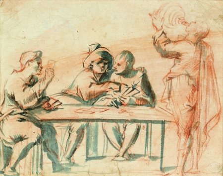 1642) Recto : trois personnages Verso : études Lavis