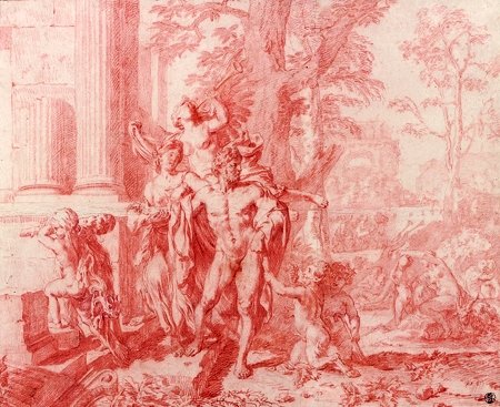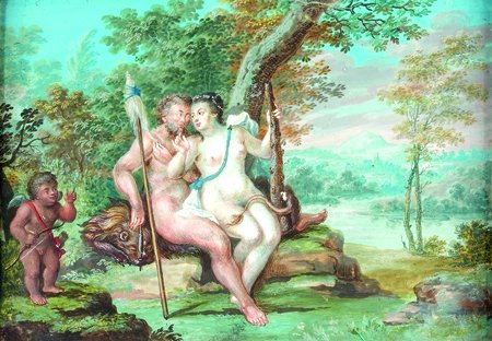 XVIIIe siècle Hercule et Omphale Gouache