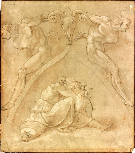 encre brune, lavis gris 18,5 x 27 cm (en tondo) Est: 400-500
