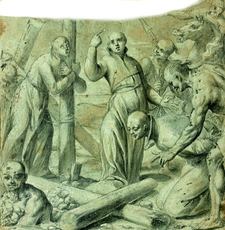 Entourage de Salvatore ROSA Les apôtres Sanguine 19,5