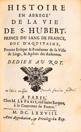 133 - GRUAU (Louys). Nouvelle invention de chasse. Pour prendre et oster les loups de la France : comme les tables le demonstrent, avec trois discours aux Pastoureaux François. Paris, Pierre Chevalier, 1613. In-12, basane brune, dos à nerfs orné, pièce de titre (reliure de l'époque). ÉDITION ORIGINALE de cet ouvrage très rare L'ouvrage est dédié à Hercule de ROHAN, duc de MONTBAZON (1568-1654). Grand veneur de France de 1602 à 1643, lieutenant général en Bretagne et gouverneur de Nantes en 1598. Bel exemplaire dans sa reliure d'époque, bien complet du feuillet d'errata. Thiébaud, 479. Schwerdt I 221. est : 5 000/7 000 Résultat : 16.000, 134 - GUILLEBERT des ESSARTS (M. de). La Chasse du lièvre à courre & à tir. Causeries et souvenirs. Paris, Pairault, s.d. [ca 1905]. In-12, bradel, demi-toile rouge, couverture illustrée conservée (reliure de lépoque). Une illustration en sanguine de CONDAMY sur la couverture et une vignette sur le titre. De la bibliothèque Couturier de Royas avec ex-libris. Thiébaud, 483.Dos passé. est : 400/500 Résultat : 900, 135 - [GUYENNE]. H.V. Un Cross-Country. S.l.n.d. [ca 1906]. In-12 oblong, cartonnage illustré de léditeur. Un titre, un tableau, un plan et dix planches dillustration en couleurs. Quelques rousseurs. Relation du cross-country organisé à Auriac, près de Pau, le 19 avril 1906. Il réunit des équipages prestigieux de Biarritz (Comte de Gontaut, Pedro de Heeren ) et de Pau (duc de Brissac ). est : 1 700/1 900 Résultat : 3.500, 136 - HABERT (Pierre). La Chasse du loup. Poëme. Paris, Ve Bouchard-Huzart, 1866. In-4°, broché. Tiré à 150 exemplaires, celui-ci (n° 10), un des 140 sur papier vergé. Édition conforme à celle de 1624, précédée dune introduction par Louis Bouchard-Huzard. Thiébaud, 486. est : 300/400 Résultat : 750, 137 - HALNA du FRETAY (Maurice). Mes chasses de loups. Saint-Brieuc, René Prudhomme, 1891. In-8° broché, couverture illustrée. Un frontispice héliogravé représentant trois chiens de la meute du baron Halna du Fretay et un tirage à part en sanguine de la vignette de couverture illustrent l'ouvrage. Tiré à 150 exemplaires. RARE. Quelques rousseurs sur le frontispice. Thiébaud, 488. est : 1 500/1 800 Résultat : 2.400, 138 - [HERBIER]. Herbarium. Herbier de la première moitié du XIXe siècle. 12 volumes petit in-folio en feuilles sous cartonnage bleu de l'époque. Important herbier, constitué méthodiquement par Jean Casimir SAUL, dans la première moitié du XIXe siècle (1818-1852) et rassemblant des plantes cueillies dans différentes provinces de France. Chaque plante épinglée sur une feuille et insérée dans une chemise est accompagnée de son nom international et des lieux et date de sa cueillette. est : 12 000/15 000 Résultat : 140.000, 139 - HOWITT (S.). British Preserve, with Etchings from Drawings [ ]. Londres, Sherwood, Gilbert & Piper, s.d. In-4° broché, couverture illustrée. Suite de 36 planches animalières gravées avec un titre-frontispice. ÉDITION ORIGINALE. Quelques rousseurs et piqûres. est : 3 000/4 000 Résultat : 2.500, 140 - [INDE]. DANIELL (William) & CAUNTER (Hobart). The Oriental annual, or Scenes in India ; comprising twenty-two engravings from original drawings by William Daniell [ ] and a descriptive account by the Rev. Hobart Caunter. Londres, Bull and Churton, 1835. In-8°, chagrin brun, serpents entrelacés estampés à froid encadrant les plats, éléphant doré au centre, dos lisse orné, tranches dorées (F. Westley). Un frontispice, une vignette sur le titre et 20 planches hors-texte gravées sur acier d'après William DANIELL. Bel exemplaire malgré de très légères rousseurs sur quelques planches. est : 2 000/2 500 Résultat : 2.600, 141 - JAMMES (Francis). Le Roman du lièvre. Paris, Émile-Paul, 1929. In-4° en feuilles sous couverture de léditeur. Douze compositions en couleurs par Roger de LA FRESNAYE. Tiré à 152 exemplaires sur vélin dArches, tous numérotés, celui-ci n° 1. Thiébaud, 517. Manque lemboîtage. Sans le dessin original et la suite des bois annoncés. Quelques rousseurs. est : 2 000/3 000 Résultat : 2050, JANNEQUIN voir AFRIQUE. 142 - JAQUET (J.). Souvenirs de la Hutte. Récits de chasse. Préface par Louis Ternier. Paris, Librairie de Paris - Firmin-Didot, s.d. [1910]. In-8°, demi-basane rouge, dos à nerfs orné, couverture illustrée conservée. Un frontispice et 92 reproductions photographiques ou croquis dans le texte. Thiébaud, 518. Quelques rousseurs. est : 200/400 Résultat : 900, 143 - JAQUIER (Léon de). La Vénerie moderne. Paris, 1891. In-4°, demi-maroquin rouge, filet doré encadrant les plats, dos à nerfs orné, tête dorée, non rogné, couverture illustrée conservée (Fechoz) Dessins par P. MAHLER. Thiébaud, 519. Rousseurs. est : 400/500 Résultat : 900, 144 - [JONG (Célestin