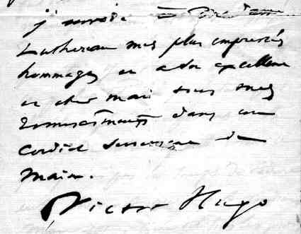 Hugo "J'envoie à Madame Luthereau mes plus
