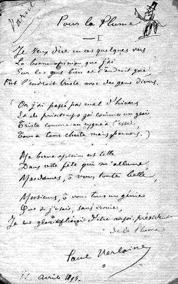 "Paul Verlaine" intitulé "Pour la Plume"