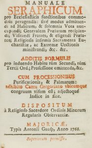 N° 1004·.1768. LIBRO: .(MÚSICA-GREGORIANO).. .MANUALE SERAPHICUM PRO ECCLESIASTICIS FUNCTIONIBUS COMMODIUS …