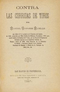 N° 1024·.1881. LIBRO: .(TAUROMAQUIA).. .NAVARRO MURILLO, MANUEL:. .CONTRA LAS CORRIDAS DE TOROS. San Martin …