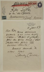 N° 278·Alexander CALDER (1898-1976). — L.A.S. « Sandy Calder », — Roxbury 11 janvier 1957, — à …