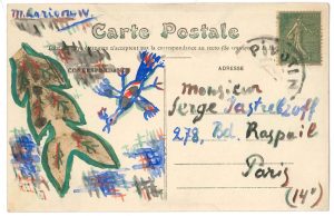 N° 292·Mikhaïl LARIONOV (1881-1964). — Carte postale signée illustrée de dessins originaux, — à …