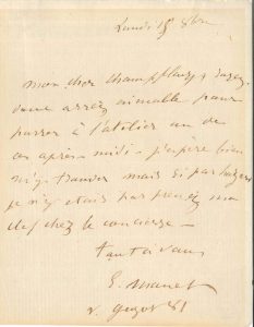 N° 298·Édouard MANET (1832-1883). — L.A.S., — [Paris] Lundi 15 octobre [1866 ?], — à …
