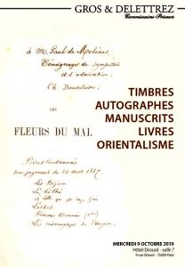 GROS & DELETTREZ - Charles Edouard DELETTREZ, Commissaire-Priseur. TIMBRES - AUTOGRAPHES - MANUSCRITS - LIVRES - ORIENTALISME. MERCREDI 9 OCTOBRE 2019 14h00 Drouot Salle 7.