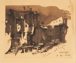 N° 271·HUGO, VICTOR (1802-1885) — Dessin original signé, légendé « Maisons à mi-côte » — Plume …
