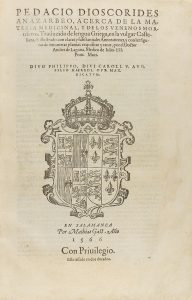 N° 100·.1566.. LIBRO: .(MEDICINA).. .DIOSCORIDES ANAZARBEO, PEDACIO:. .ACERCA DE LA MATERIA MEDICINAL, Y …