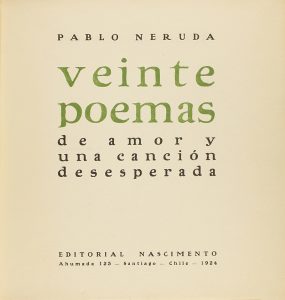 N° 243·.1924.. LIBRO: .(LITERATURA-VANGUARDIAS).. .NERUDA, PABLO:. .VEINTE POEMAS DE AMOR Y UNA CANCIÓN …