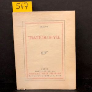 N° 547·ARAGON (Louis). Traité du style. P., NRF, 1928, 4° tellière, br., non coupé. Edit. orig. 1/109 …