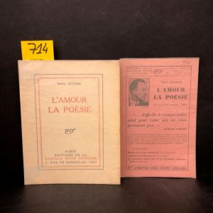 N° 714·ÉLUARD (Paul). L'Amour la Poésie. P., NRF, 1929, 4° tellière, br., non coupé (dos lég. …