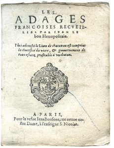 N° 55·LE BON (Jean, dit L'Hétropolitain) — Les Adages françoises. — Plus adiousté le Livre de …