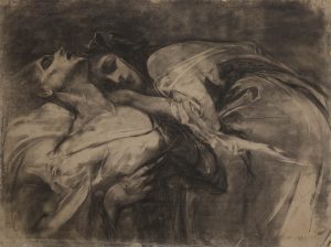 N° 1140·ALPHONSE MUCHA (1860-1939) — Personnages couchés. — Fusain sur vergé filigrané.— Collé …