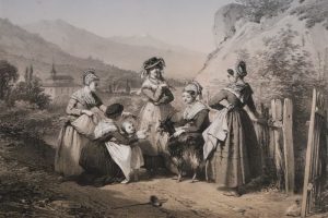 N° 57·JACQUES (André). Femme en costume de Tarentaise. 1959. Encadrée. Gravure en couleurs reproduite …