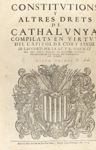 N° 112·.1704.. LIBRO: .(DERECHO CATALÁN).. .CONSTITUTIONS Y ALTRES DRETS DE CATHALUNYA COMPILATS EN …