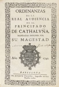 N° 115·.1742.. LIBRO: .(DERECHO).. .ORDENANZAS DE LA REAL AUDIENCIA DE EL PRINCIPADO DE CATHALUÑA, …