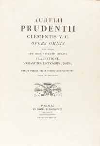 N° 19·.1788.. LIBRO: .(CLASICOS-BODONI).. .PRUDENTIUS, AURELIUS CLEMENTUS:. .OPERA OMINIA NUNC PRIMUM CUM …