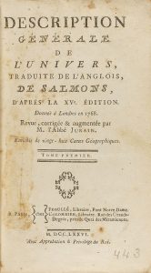 N° 89·.1776.. LIBRO: .(GEOGRAFÍA).. .SALMON:. .DESCRIPTION GÉNÉRALE DE L´UNIVERS... TRADUITE... M. …