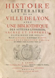 D’Alembert (1763). Atlas des côtes maritimes de France (1766). Baudrier-Boissel (1795)-Bruzen de la Martinière (1740). Chaderlos de Laclos (1782)-Dictionnaire de Trevoux (1740)-Héloïse et Abeilard (1780). Le Soleil en signe du Lyon (1623). Lodovico dolce (1535)-Menestrier (1669). Moreri (1732). Paradin (1561). Pidou de Saint Olon (1694)-Républiques Elzeviriennes (1630). Ruby (1604). Brillat Savarin (1826). Careme (1828)-Curnonsky (1925). Des Ombiaux (1913). Dubois (1880). Escoffier (1903). Gouffé (1867)-Menon (1767). (1890). Monfalcon(1866). Niepce (1885)-Revue de Lyonnais (125 volumes). Viollet le Duc (1920). Vingtrinier (1855) Livre de prière tissé sur soie (1885) etc.