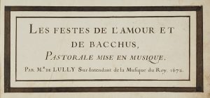 N° 276·(Lully Jean-Baptiste) - Manuscrit musical. ‘ ’les Festes De L’amour Et De Bacchus, Pastorale …