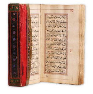 N° 88·MANUSCRIT]. Coran du Cachemire. Pigments polychromes et or sur papier, reliure en papier mâché …
